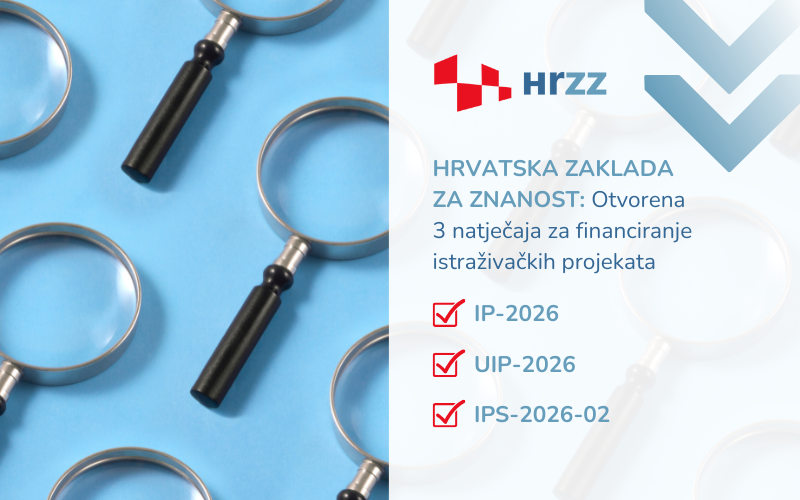 Hrvatska zaklada za znanost (HRZZ) objavila je tri nova natječaja namijenjena financiranju istraživačkih aktivnosti u 2026. godini.